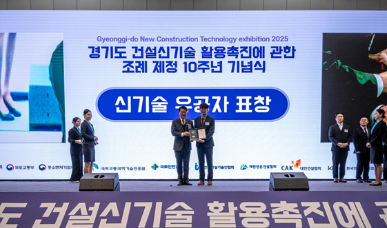 KH건설 기술연구소 강민수 소장이 2025년 경기도 건설신기술 박람회에서 신기술 유공자 표창을 수상했다.