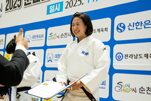 2일 전남 순천팔마체육관에서 열린 2025 순천만국가정원컵 전국유도대회 겸 2026 국가대표 1차 선발전 여자 –52kg급 경기에 출전한 장세윤은 뛰어난 집중력과 안정된 경기 운영으로 전 경기를 제압하며 정상에 올랐다.