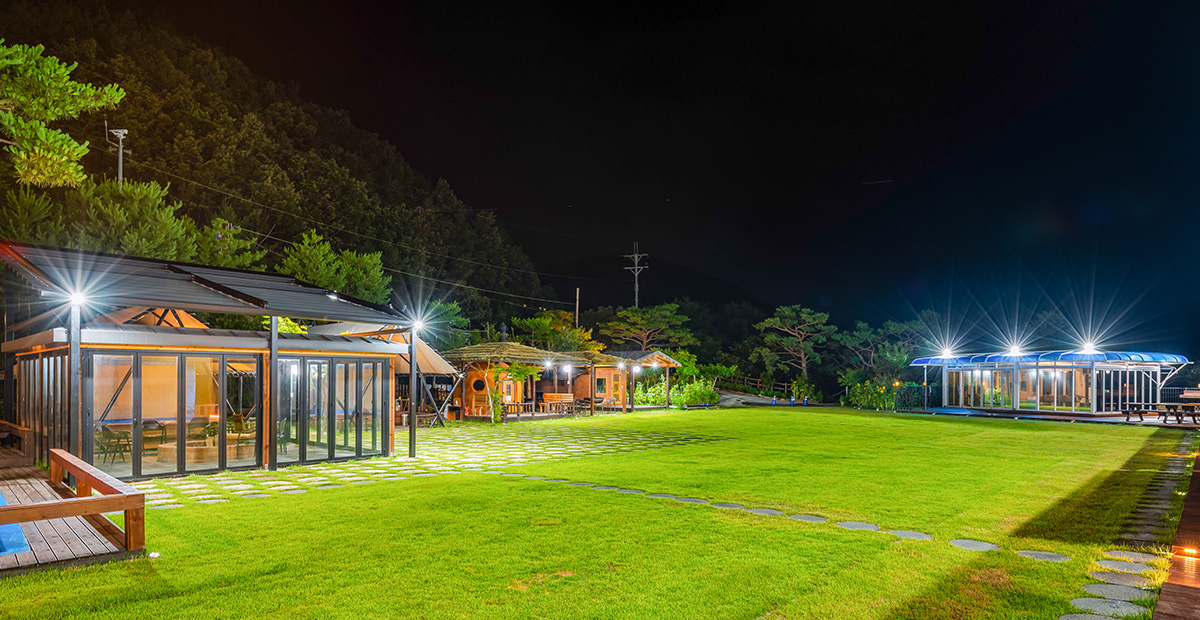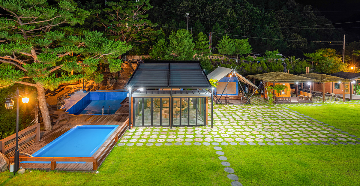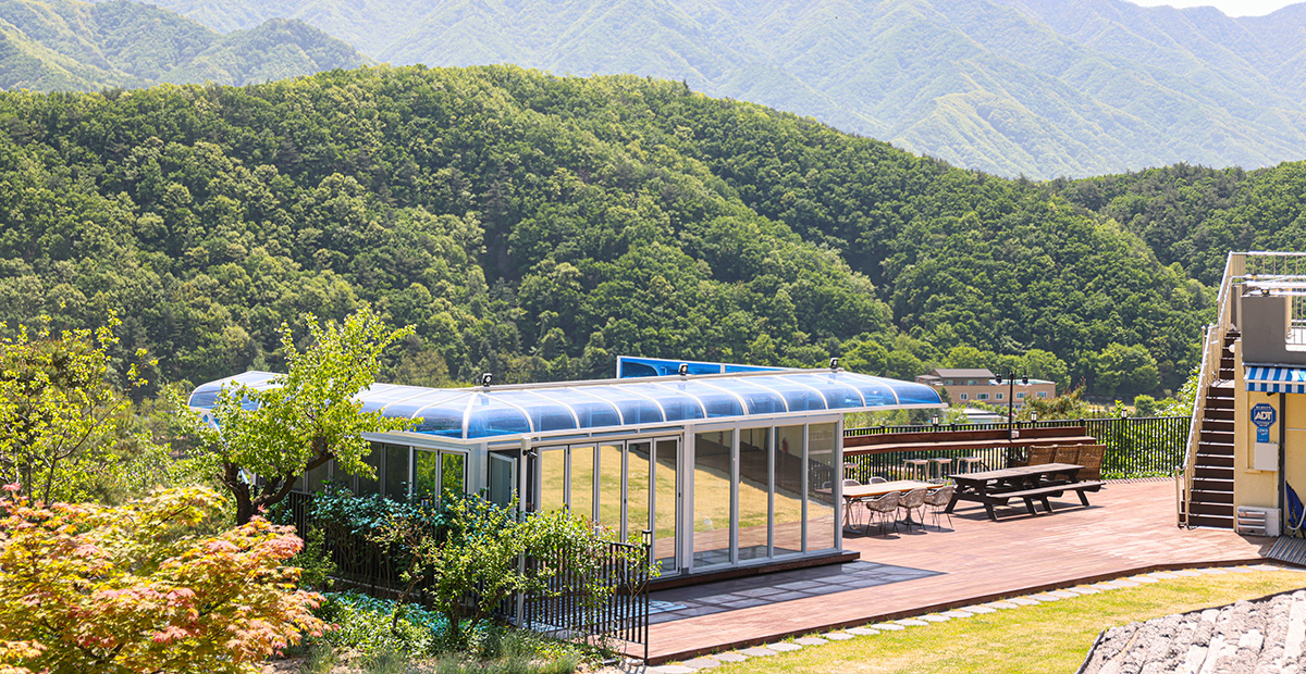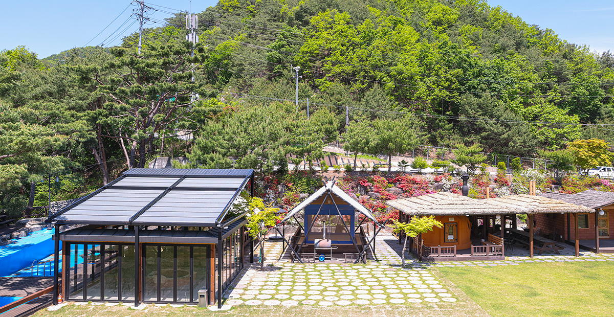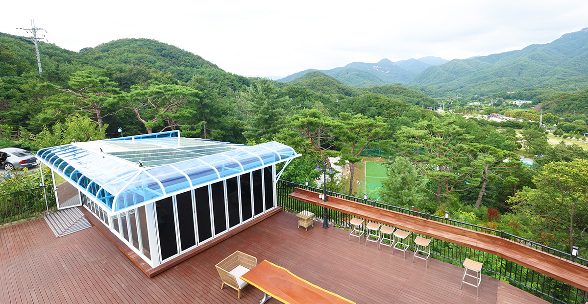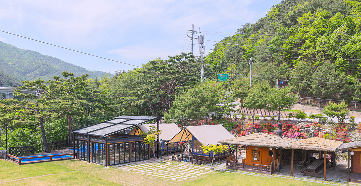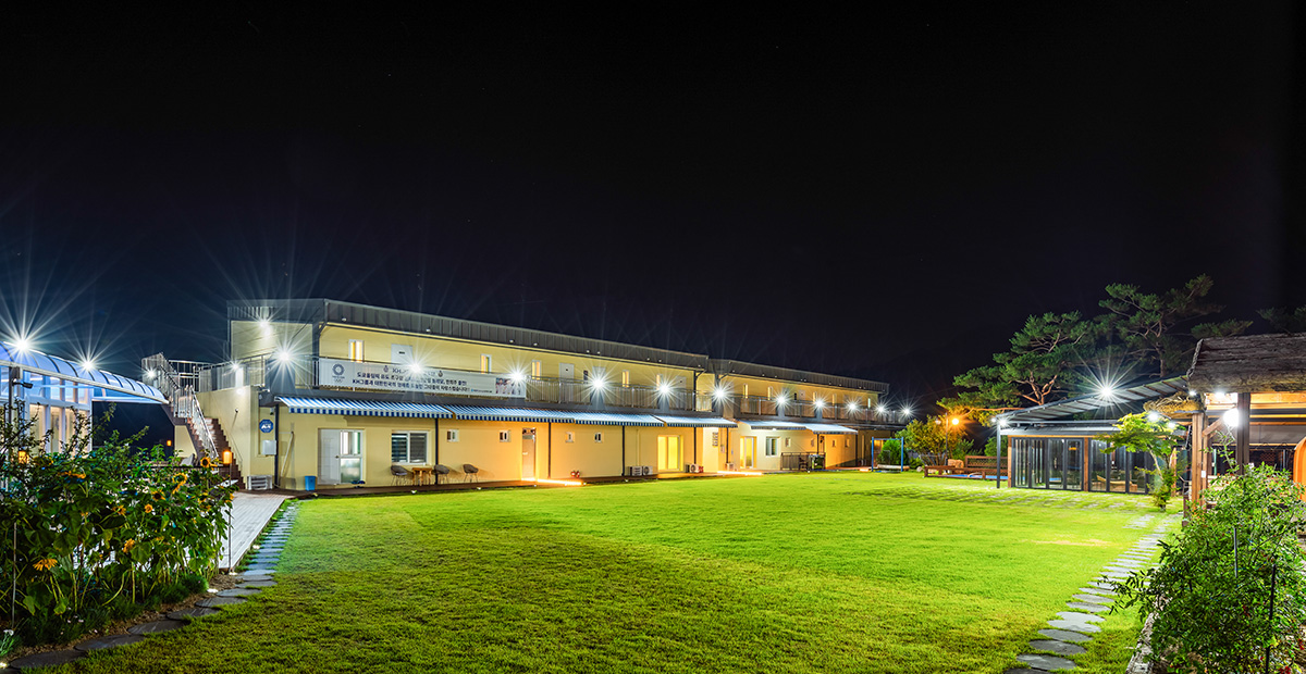 모던하고 세련된 인테리어의 객실을 비롯하여, 캠핑 시설과 대형 세미나실, 족구장, 수영장 등의 시설을 갖추고 있습니다.